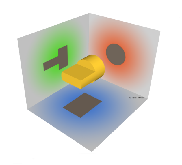 Pozrime sa na obrázok nižšie – je na ňom trojrozmerný objekt. Jeden človek vidí jeho priemet ako ležaté písmeno T. Druhý vidí kruh. Tretí vidí obdĺžnik. Každý opisuje svoj pohľad presne a pravdivo.